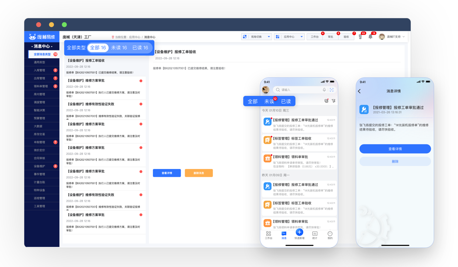 庞械系统大幅减轻了设备运维部门的工作量,在内部管理方面也帮助我们降本增效,非常实用的好系统!